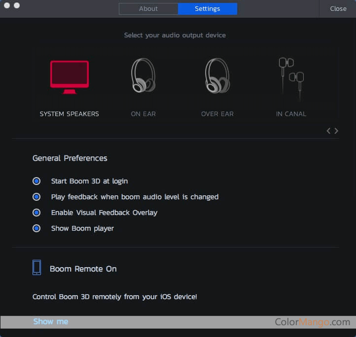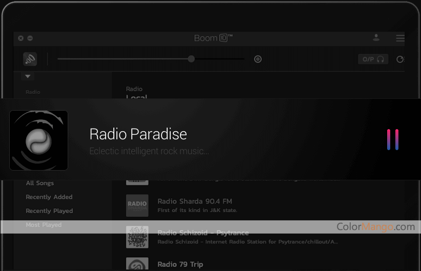 Boom 3D basiert auf Boom 2 und bietet eine 3D-Surround-Stereo-Soundeffekt-Suite und eine unabhängige Steuerung der Klangquellen. Es bietet verschiedene Equalizer-Voreinstellungen.