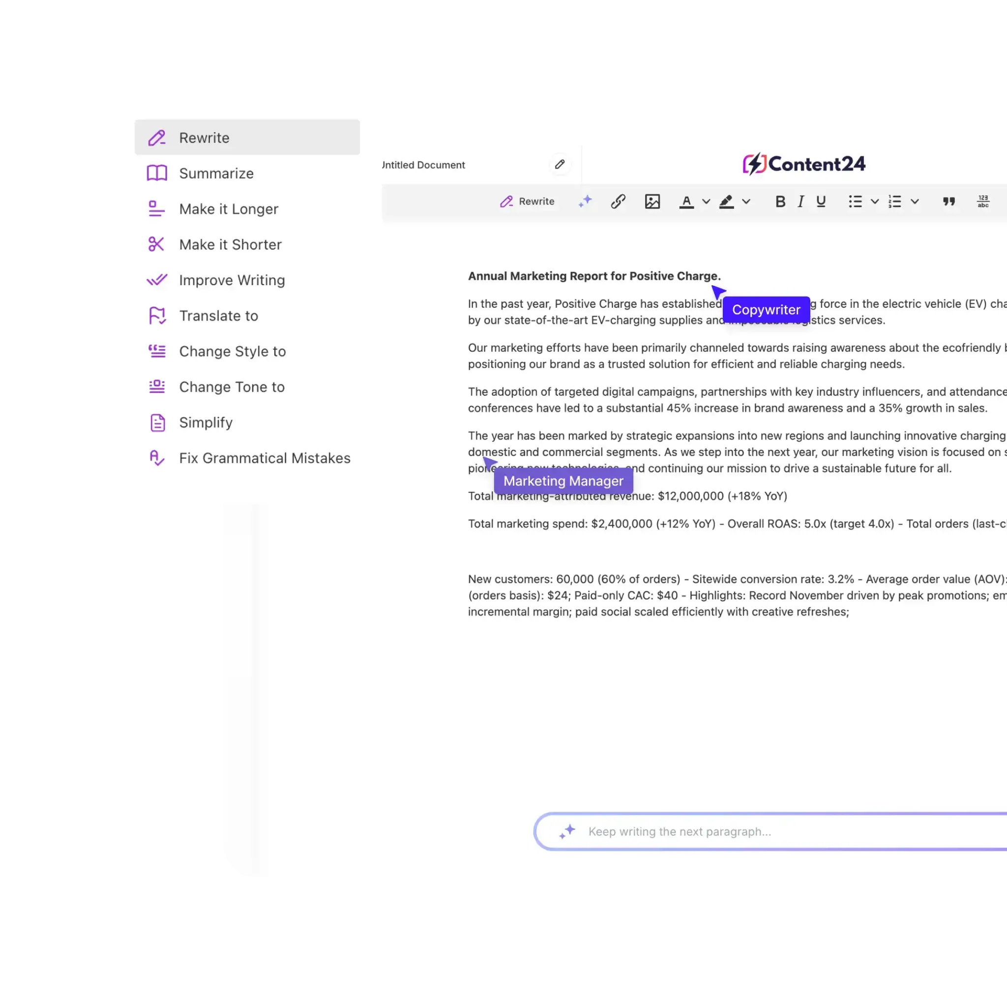 Content24 ist ein einheitlicher KI-Arbeitsbereich, der Benutzern hilft, Inhalte schneller und konsistenter zu generieren, zu bearbeiten und gemeinsam daran zu arbeiten. Es kombiniert KI-Tools zum Schreiben, Bearbeiten von Dokumenten, Bilderzeugung/-bearbeitung, Videoerstellung, Chat und Code-Tools auf einer Plattform. Benutzer können mit Vorlagen beginnen, sie mit der Ausrichtung der Markenstimme verfeinern und fertige Inhalte nahtlos exportieren oder teilen. Zu den typischen Benutzern gehören Marketingfachleute, Kreative, Teams und Profis, die skalierbare Inhaltsworkflows mit mehreren Formaten benötigen.