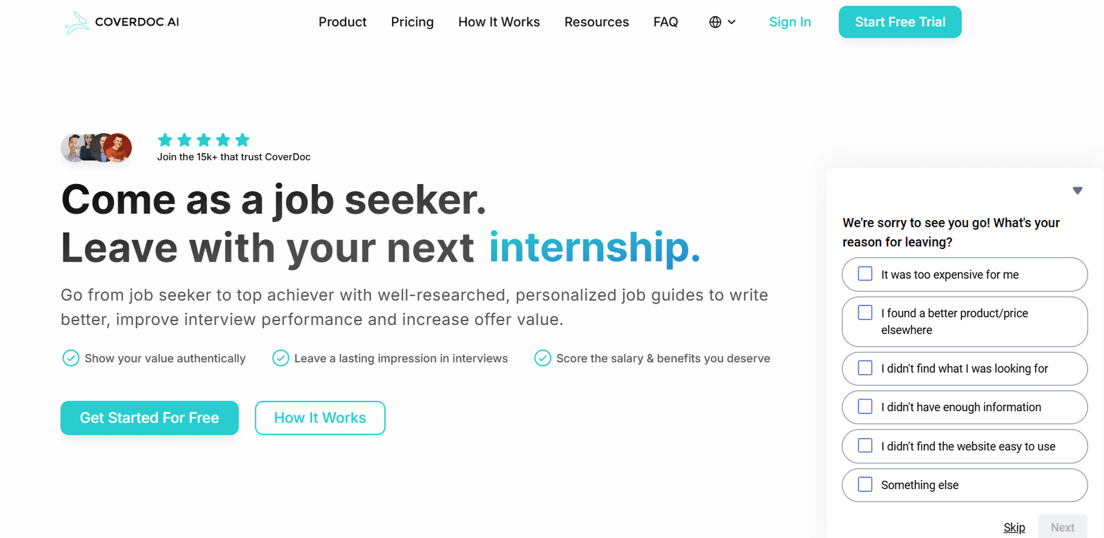 CoverDoc ist ein KI-gestützter Assistent für die Jobsuche, der Benutzern hilft, maßgeschneiderte Anschreiben zu erstellen, sich auf Vorstellungsgespräche vorzubereiten und in Stellenangeboten zu navigieren. Er automatisiert die Personalisierung durch die Analyse von Lebensläufen, Stellenbeschreibungen und Unternehmensinformationen, spart Zeit und verbessert die Bewerbungsqualität. Typische Nutzer sind Arbeitssuchende, die nach effizienten, forschungsgestützten Dokumenten und Erkenntnissen suchen, um sich von anderen abzuheben. Das Tool bietet auch Funktionen zur Vorbereitung von Vorstellungsgesprächen und zur Bewertung der Vergütung, um Bewerber während des Einstellungsprozesses zu unterstützen.