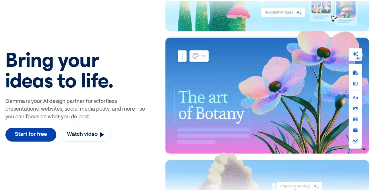 KI-Präsentationsgenerator, mit dem Sie schöne, ansprechende Präsentationen, Dokumente und Webseiten erstellen können