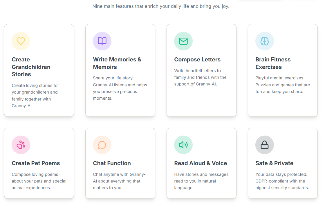 Granny‑AI ist ein KI-Begleiter für den Alltag: Sie chattet, merkt sich wichtige Details und hilft bei Erinnerungen und Check-ins.