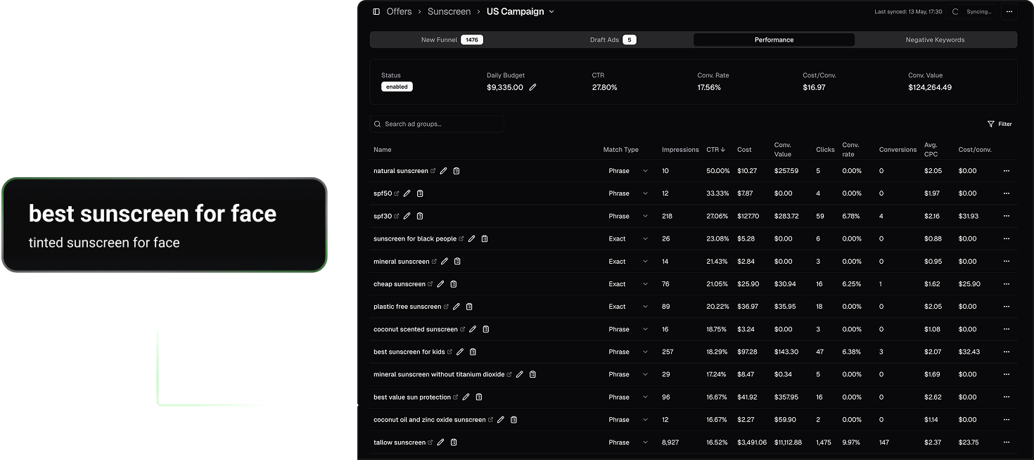 KI-Agenten für Google-Anzeigen. Autonome KI-Agenten, die Ihre Google-Suchanzeigen und Landingpages schalten und kontinuierlich für Konversionen optimieren.