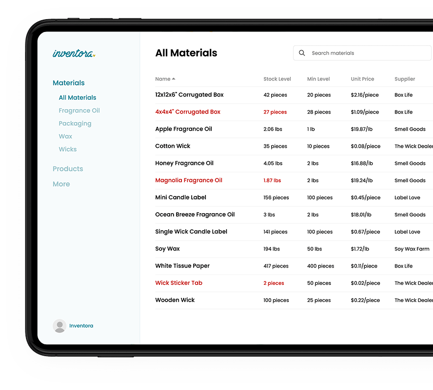 Inventarverwaltungsplattform für Hersteller, Handwerker und kleine Hersteller.