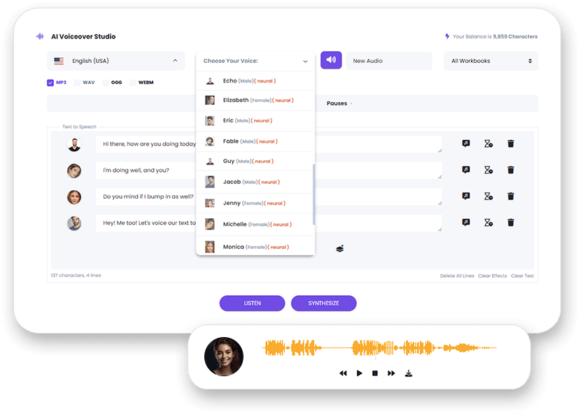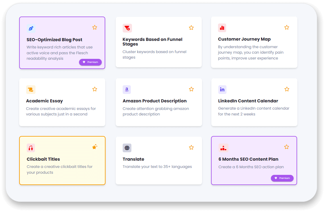 KI-gestützter Assistent zur Erstellung und zum Schreiben von Inhalten mit Vorlagen, Zeichen, Textgenerierung, Sprache und Transkription.
