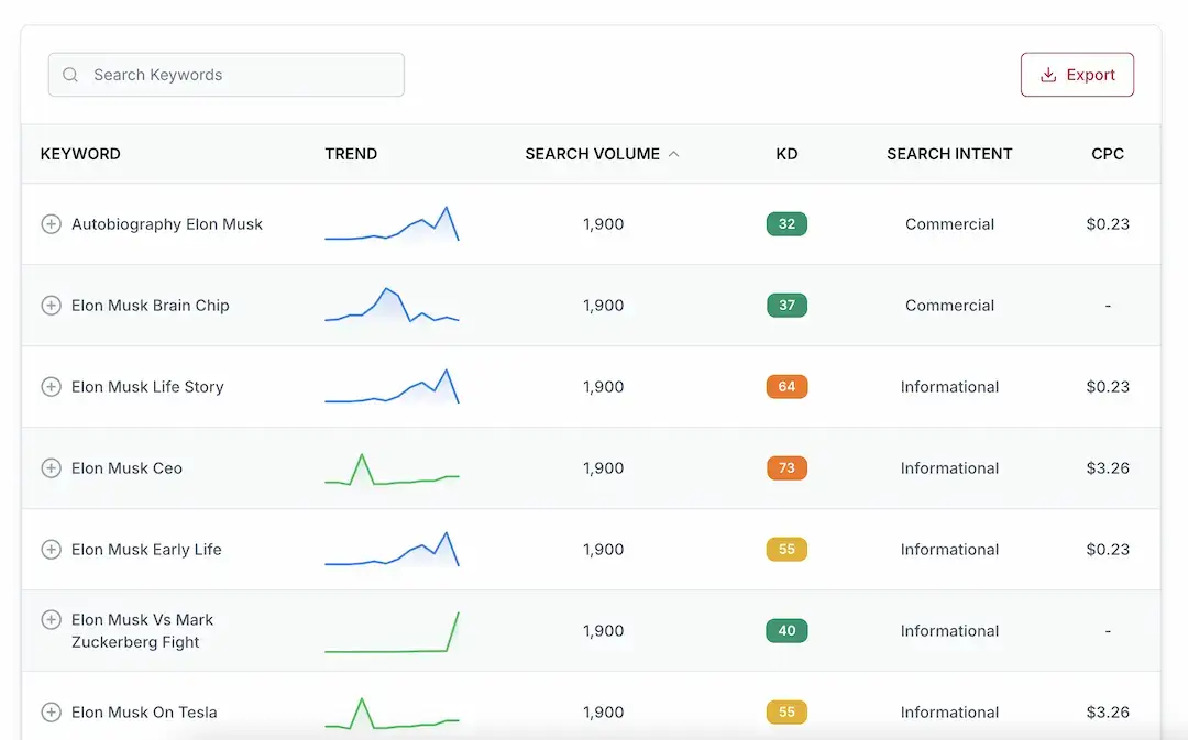 Keyword-Recherche und Clustering: Entdecken Sie wirkungsvolle Keywords (einschließlich Long-Tail), analysieren Sie Trends, Suchvolumen und Wettbewerb.