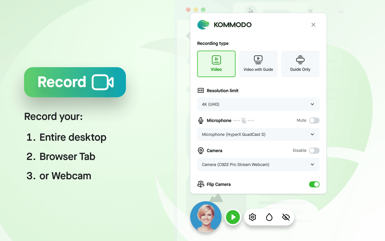 Unbegrenzte HD-Bildschirm- und Webcam-Aufnahme mit Cloud-Speicher, ohne Zeitbeschränkungen und ohne Wasserzeichen.