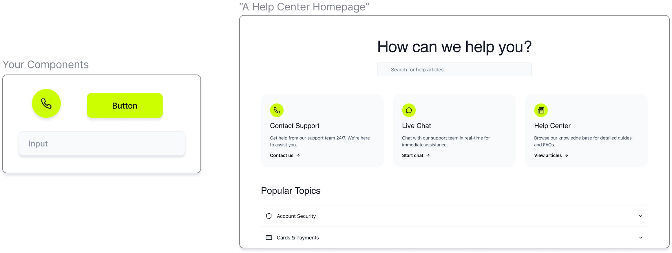 Funktioniert mit Ihrem Designsystem oder Markenstil: passt sich Ihren vorhandenen Stilen/Ihrem Branding an, sodass die neue Benutzeroberfläche nahtlos in die alte Benutzeroberfläche passt.