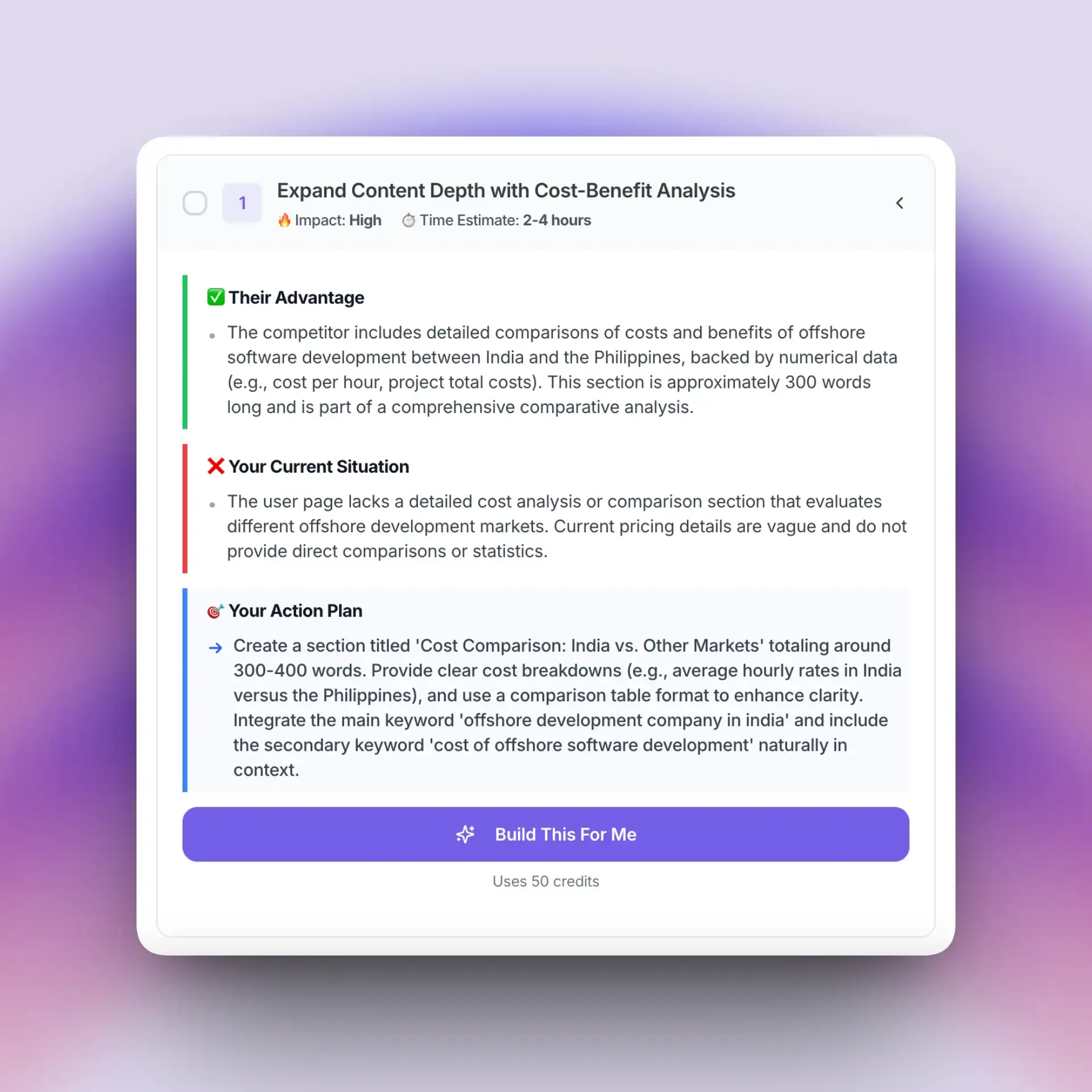 KI-gestütztes SEO-Tool, das Probleme diagnostiziert und umsetzbare Optimierungsschritte bereitstellt.