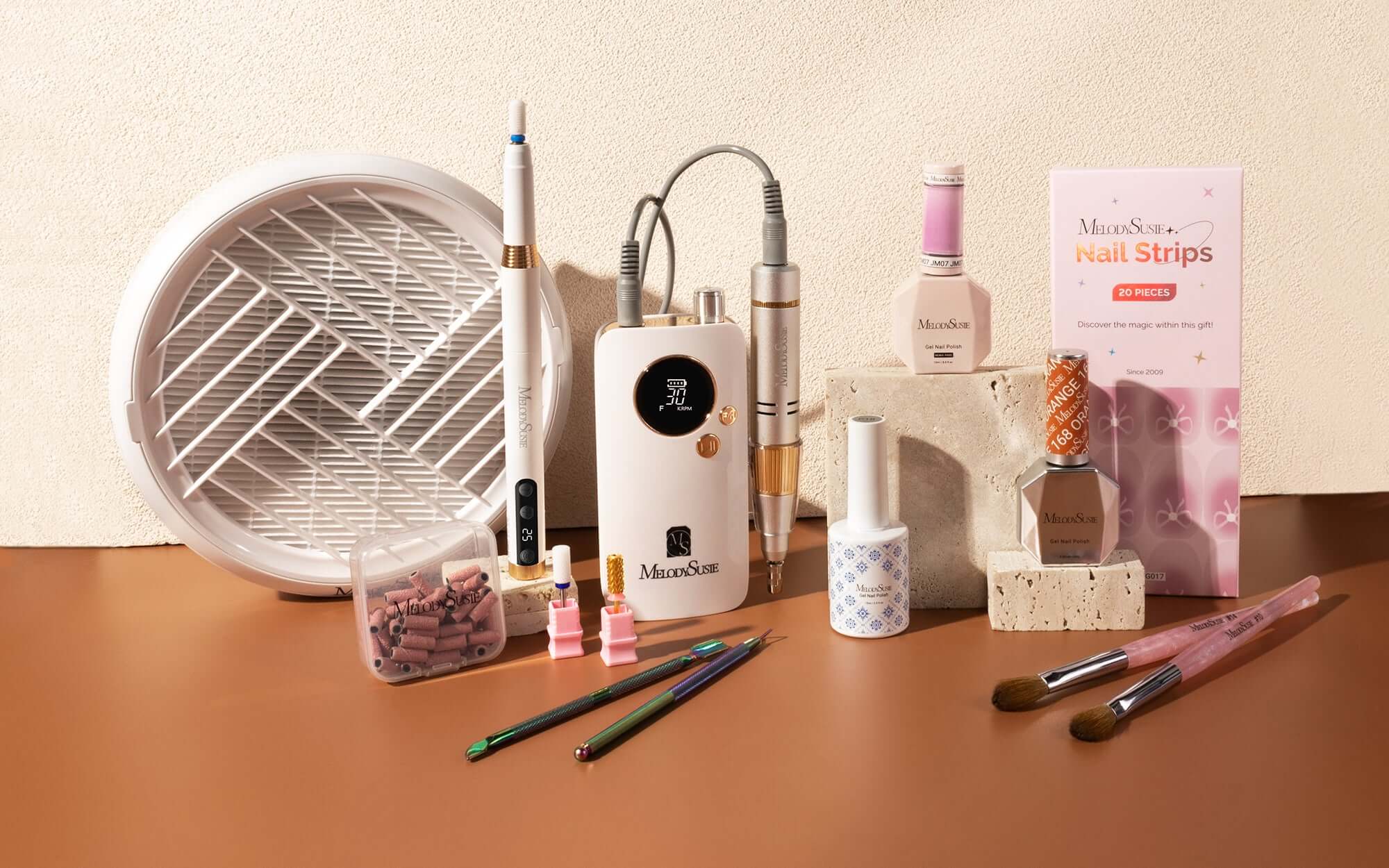 Professionelle Nagelpflegemarke, die elektrische Nagelbohrmaschinen, Lampen und Werkzeuge für Salons und Heimanwender anbietet.