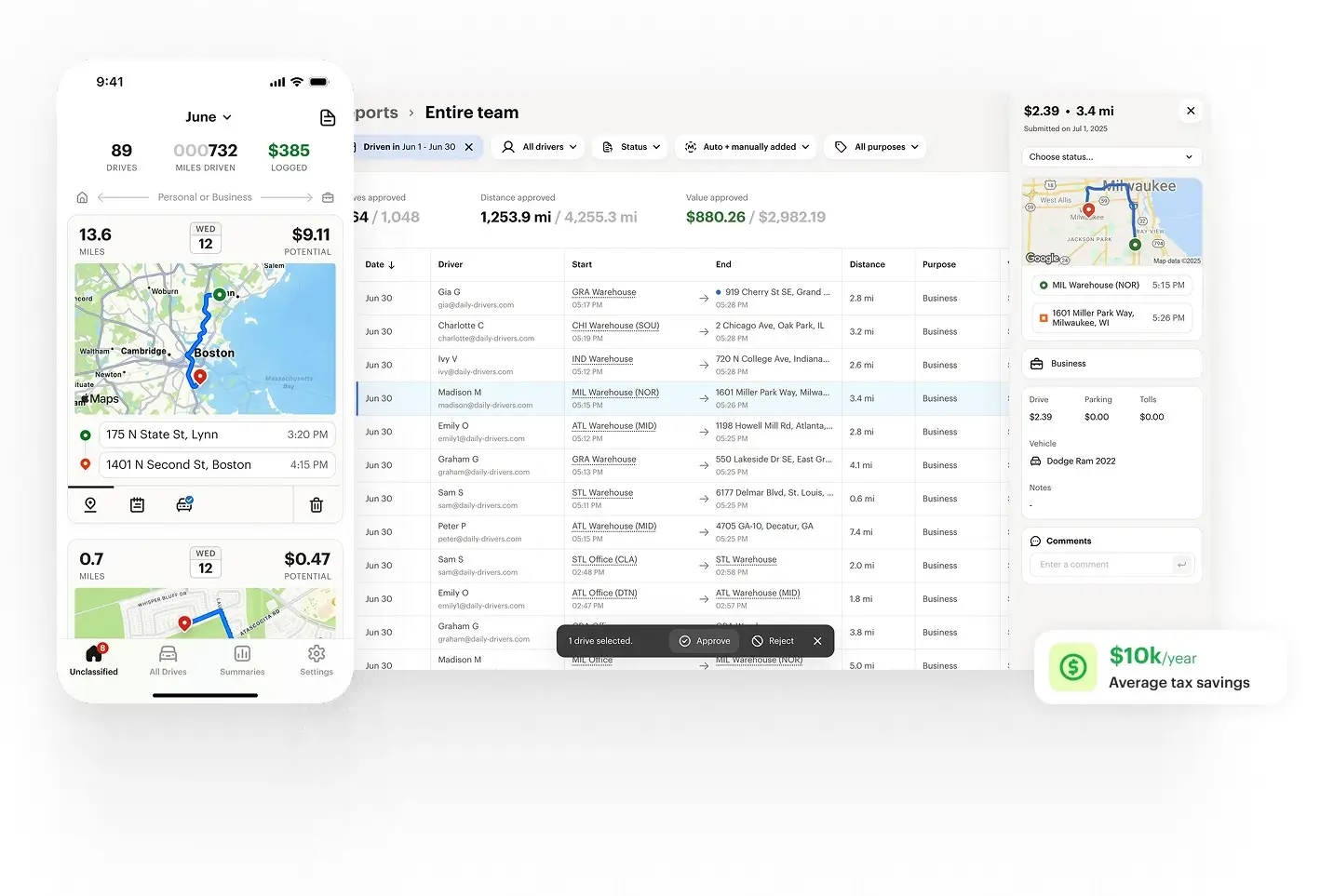 Automatische App zur Kilometerverfolgung und Berichterstattung für Geschäfts- und Steuerrückerstattungen.