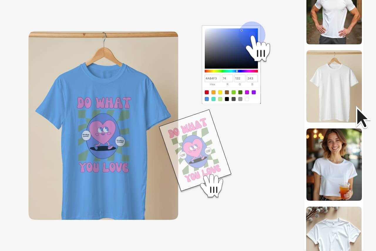 ✅ KI-gestützte Modellgenerierung Laden Sie Ihr Design oder Bild hoch Wähle ein Produkt oder einen Kontext (z. B. T-Shirts, Geräte, Verpackungen, Poster) __RESNAME_457 platziert dein Design automatisch in realistischen Mockup-Szenen