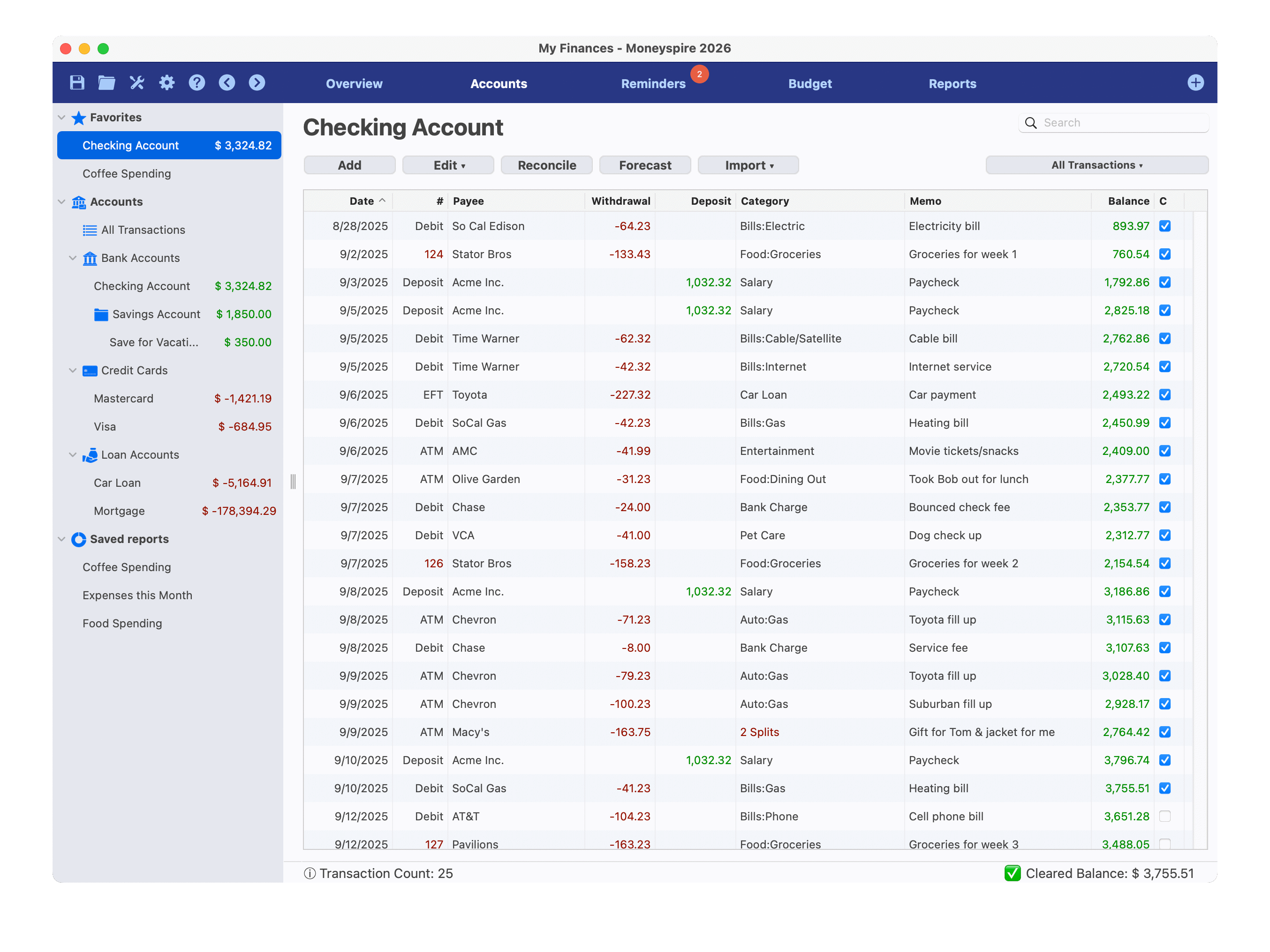 Moneyspire ist eine praktische und unkomplizierte persönliche Finanzverwaltungssoftware. Moneyspire integriert Ihre gesamten Finanzen an einem Ort. So können Sie Ihr Bankkonto, Ihre Kreditkarte, Ihr Darlehen, Ihre Investition usw. bequem verfolgen. verfügt über Funktionen wie Kontoverwaltung, Rechnungsabrechnung, Budget usw., sodass Sie mit einem Klick Berichte für Sie erstellen können, sodass Sie jederzeit und überall überprüfen können, wo sich Ihr Geld befindet, und den Saldo prognostizieren können, um Cashflow-Probleme zu vermeiden. __RESNAME_kann Ihre gesamte finanzielle Situation auf einen Blick klar machen, was Sie von nun an beruhigen kann.