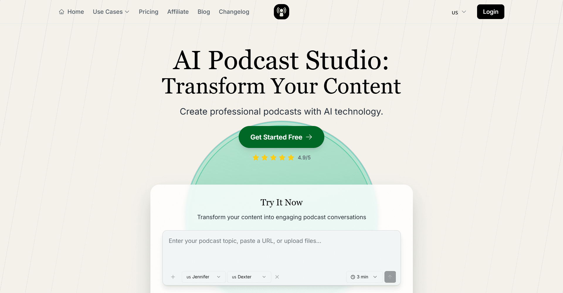 KI-Podcast-Generator, mit dem Sie sofort Podcasts in professioneller Qualität aus allen Arten von Inhalten erstellen können