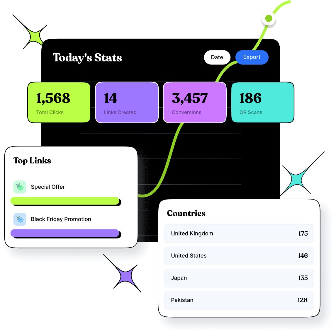 Erweiterte Analysen: Verfolgen Sie Klickraten, Geolokalisierung, Zugriffsquellen und Konversionsmetriken.
