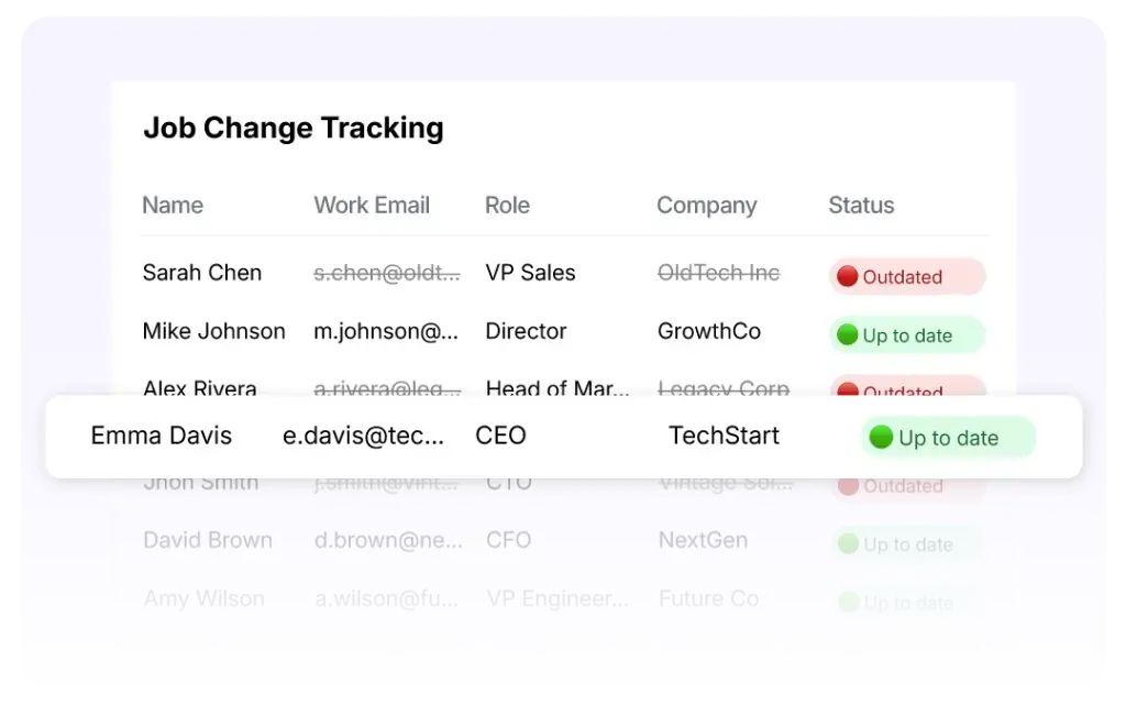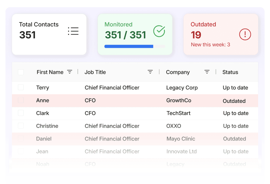 Überwachung potenzieller Stellen- oder Unternehmensänderungen in Echtzeit, um Ihre Datenbank auf dem neuesten Stand zu halten.