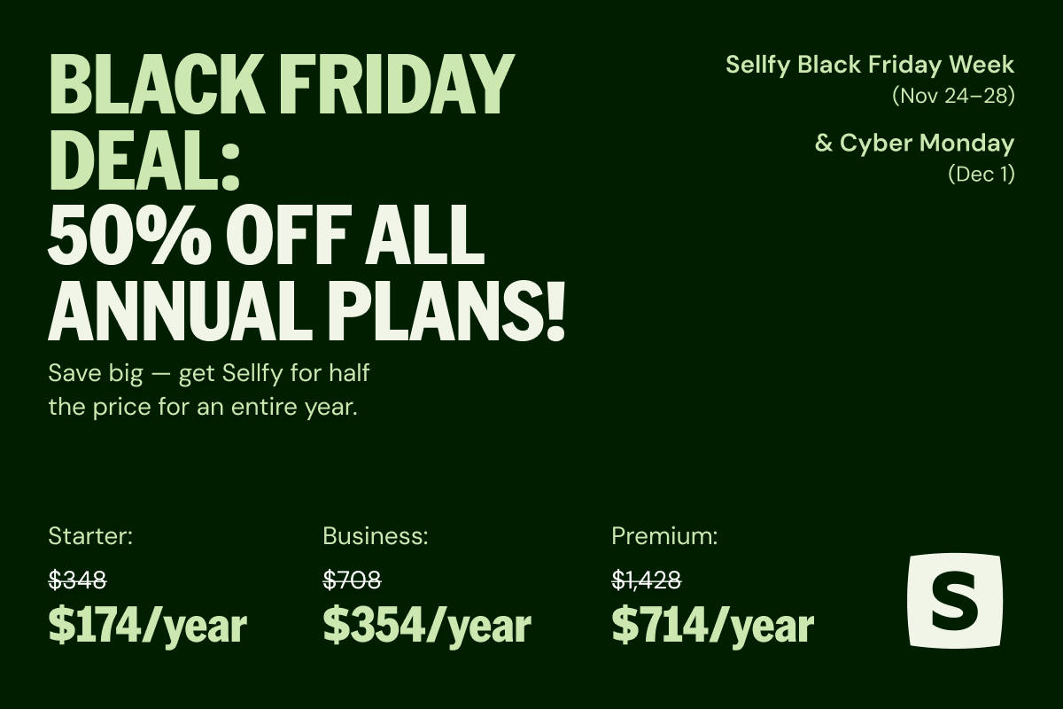 • 📩 Exklusiv per E‑Mail: Black Friday offer: 50% off all annual Sellfy plans from November 24-28 and December 1.