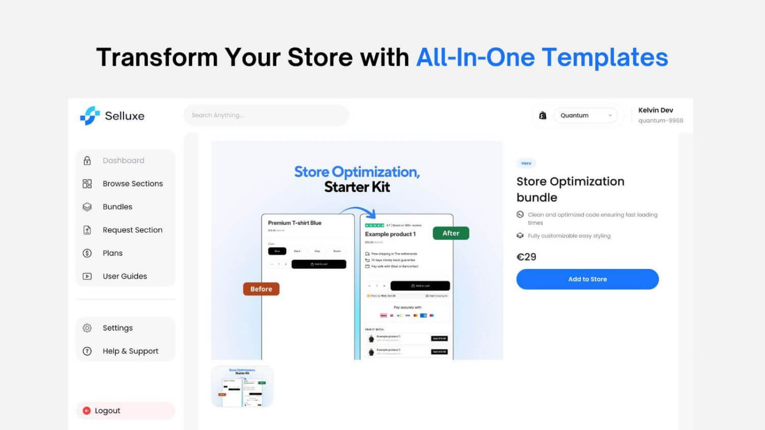 ⚡ Installation von hochwertig aussehenden Abschnitten mit einem Klick 🎨 Vollständig an Ihre Marke anpassbar 🛠 Funktioniert mit jedem Shopify-Theme, kein Code erforderlich 🚀 Konzipiert für Geschwindigkeit und Konversionsleistung 🔁 Mit einem Konto in einer unbegrenzten Anzahl von Geschäften verwenden