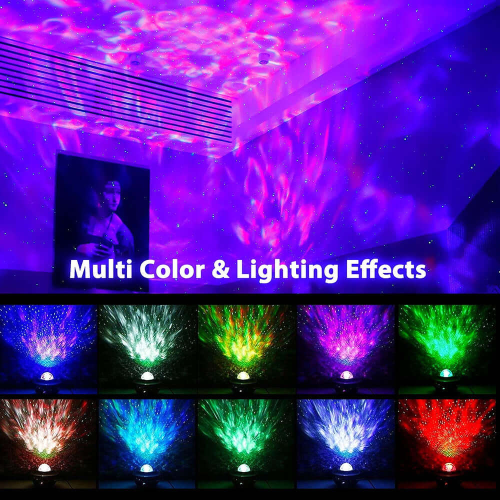 Galaxy Projectors: 10-color starry sky projections Ocean wave effect for a calming atmosphere Music-activated light shows Remote control for brightness and color adjustment