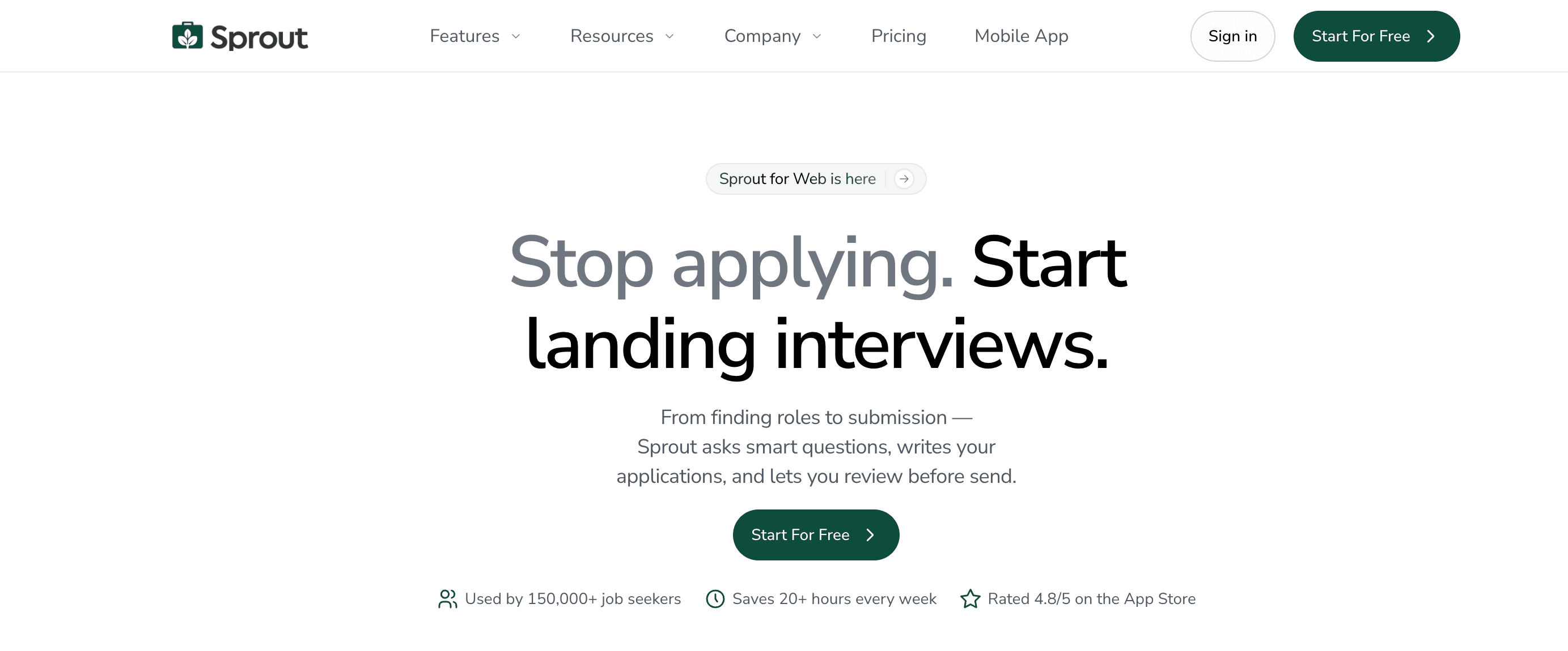 📄 KI-Anschreiben und Lebensläufe Automatisch auf jeden Job zugeschnitten mit rollenspezifischer Optimierung KI mit einem Klick anwenden Bewerben Sie sich sofort mit Wischen oder Tippen — keine Formulare, kein Kopieren und Einfügen 🔍 Intelligentes Jobmatching Kuratierte Angebote in Echtzeit, die auf Ihren Fähigkeiten und Vorlieben basieren 🔁 Automatisierte Aktualisierungen von Lebensläufen Sprout aktualisiert Ihren Lebenslauf, wenn Ihr Profil wächst 📅 Vollständig verfolgte Bewerbungen Statusaktualisierungen, Follow-ups und Planung von Vorstellungsgesprächen in Echtzeit in einem Dashboard 📱 Web- und Mobilzugriff Synchronisiert den Fortschritt geräteübergreifend und sorgt so jederzeit für eine reibungslose Jobsuche 🛠️ KI-Einblicke Analysen darüber, was funktioniert und wo Sie Ihre Anwendungsstrategie verbessern können