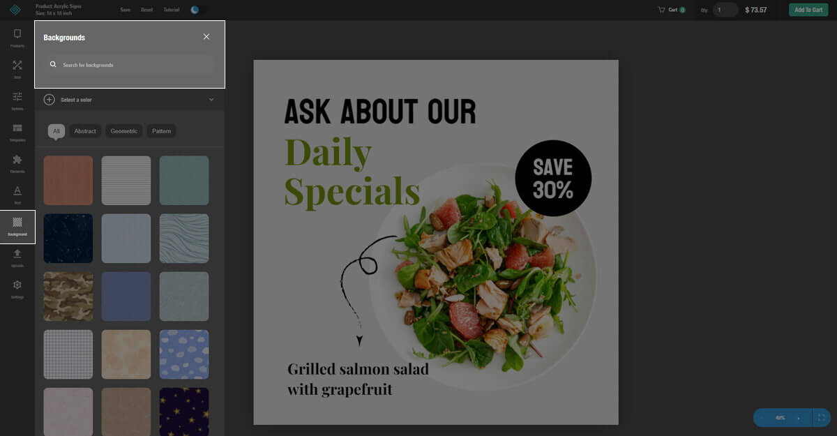 • Benutzer können online entwerfen und aus Materialien wie Acryl, Aluminium und PVC wählen.