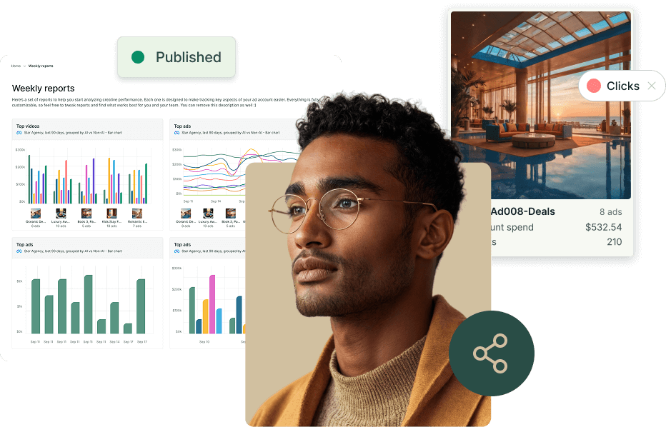 KI-gestützte Berichte und Einblicke: Analysiert Werbekreationen, Benennungskonventionen und Kampagneninhalte, um Trends und Optimierungsideen aufzudecken.