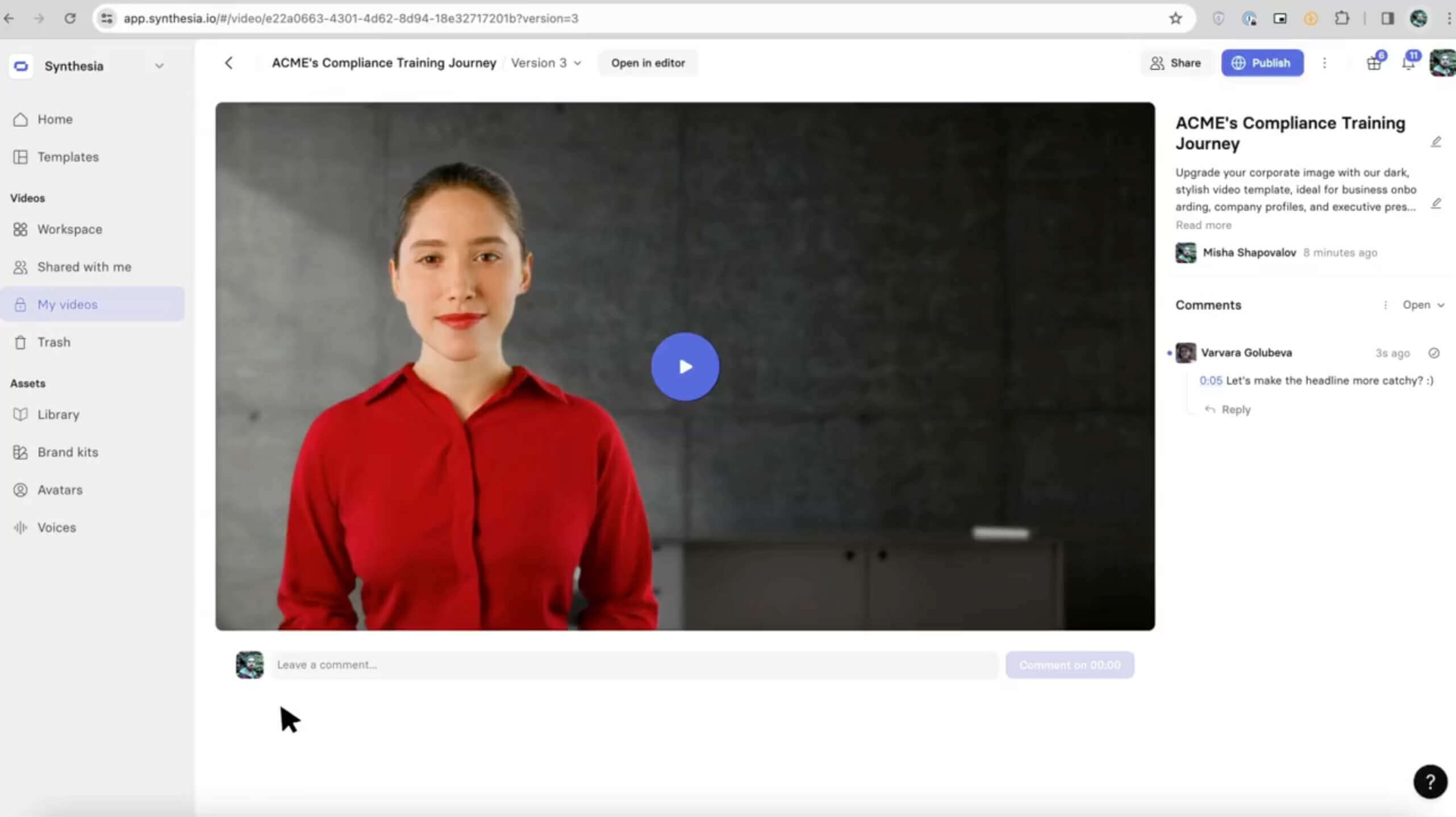 Currently, Synthesia supports over 25 templates for different scenarios, over 60 male and female voices in more than 45 different languages, and more than 45 presenters with different appearances, races, ages, and features.