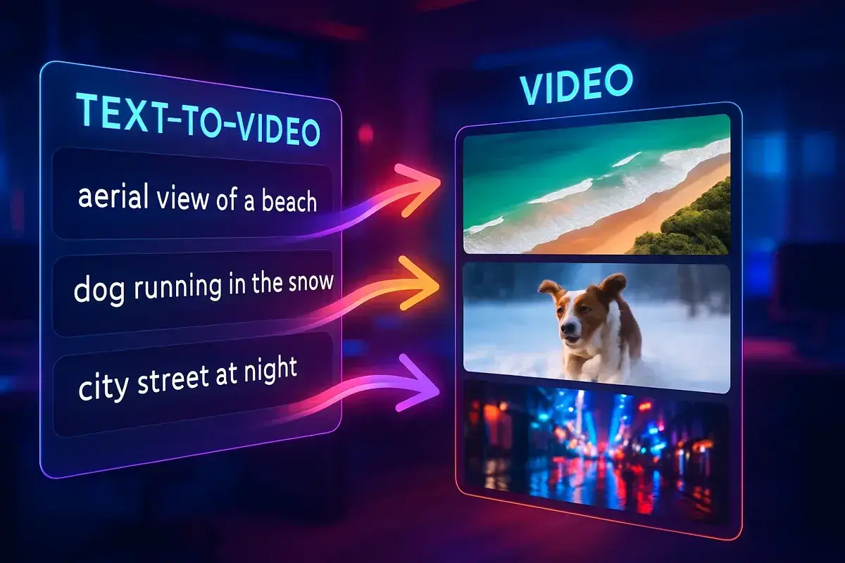 Text → Video: Verwandeln Sie schriftliche Eingabeaufforderungen oder Skripte in vollständig gerenderte Videos.